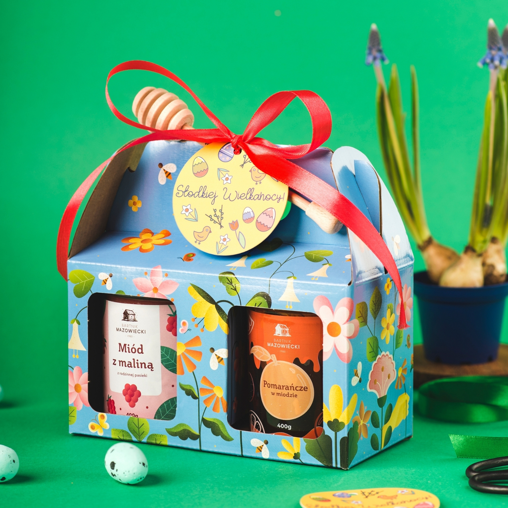 Choć Wielkanoc to czas wiosennego startu, zawartość tego błękitnego pudełka powstawała znacznie wcześniej. Pszczoły pracowały niestrudzenie przez wiele miesięcy minionego sezonu, odwiedzając miliony kwiatów na mazowieckich polach, by zebrać nektar, który dziś trafia na Twój stół. Wybierając ten zestaw miodów i owoców w miodzie na Wielkanoc, podarujesz bliskim owoc cierpliwości i pasji.