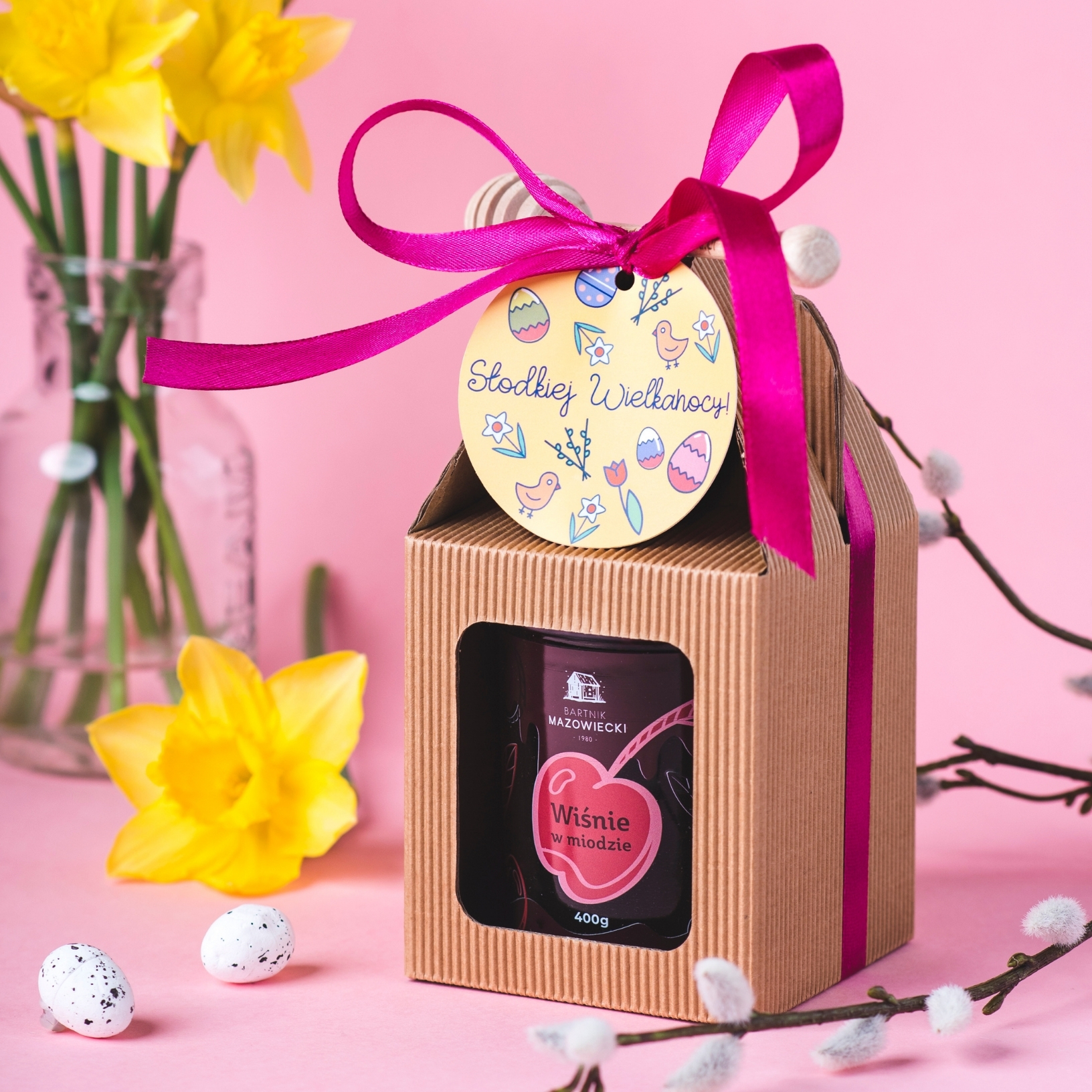Co roku przed Wielkanocą sklepowe półki uginają się od tych samych, przewidywalnych upominków. Czekoladowe jajeczka z nadzieniem, zajączki czy cukrowe baranki to standard, do którego wszyscy zdążyliśmy się już przyzwyczaić. Choć tradycja wręczania słodkości "od zajączka" jest piękna, w tym roku warto wyjść poza utarte schematy i podarować coś znacznie ciekawszego. Nasz zestaw wielkanocny skrywający w sobie owoce w miodzie to wspaniała i nieszablonowa alternatywa. Estetyczny kartonik z karbowanej tektury, ozdobiony wyrazistą wstążką i drewnianym czerpakiem/łyżką, od razu rzuca się w oczy i udowadnia, że świąteczny podarunek może być piękny, urokliwy i zaskakujący.