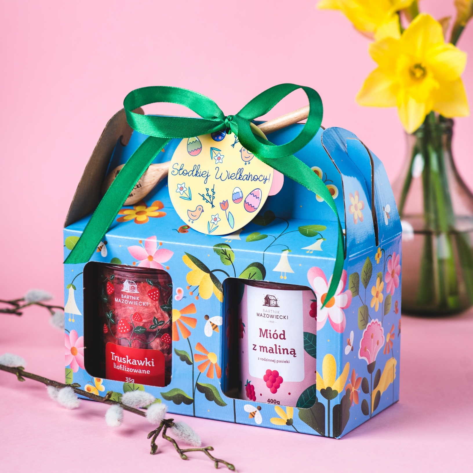 Zestaw prezentowy na Wielkanoc miód i owoce liofilizowane